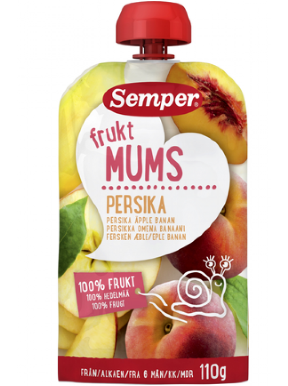 Фруктовое пюре Semper Persikkaa, Omenaa Ja Banaania 110 г с 6 месяцев персик яблоко и банан