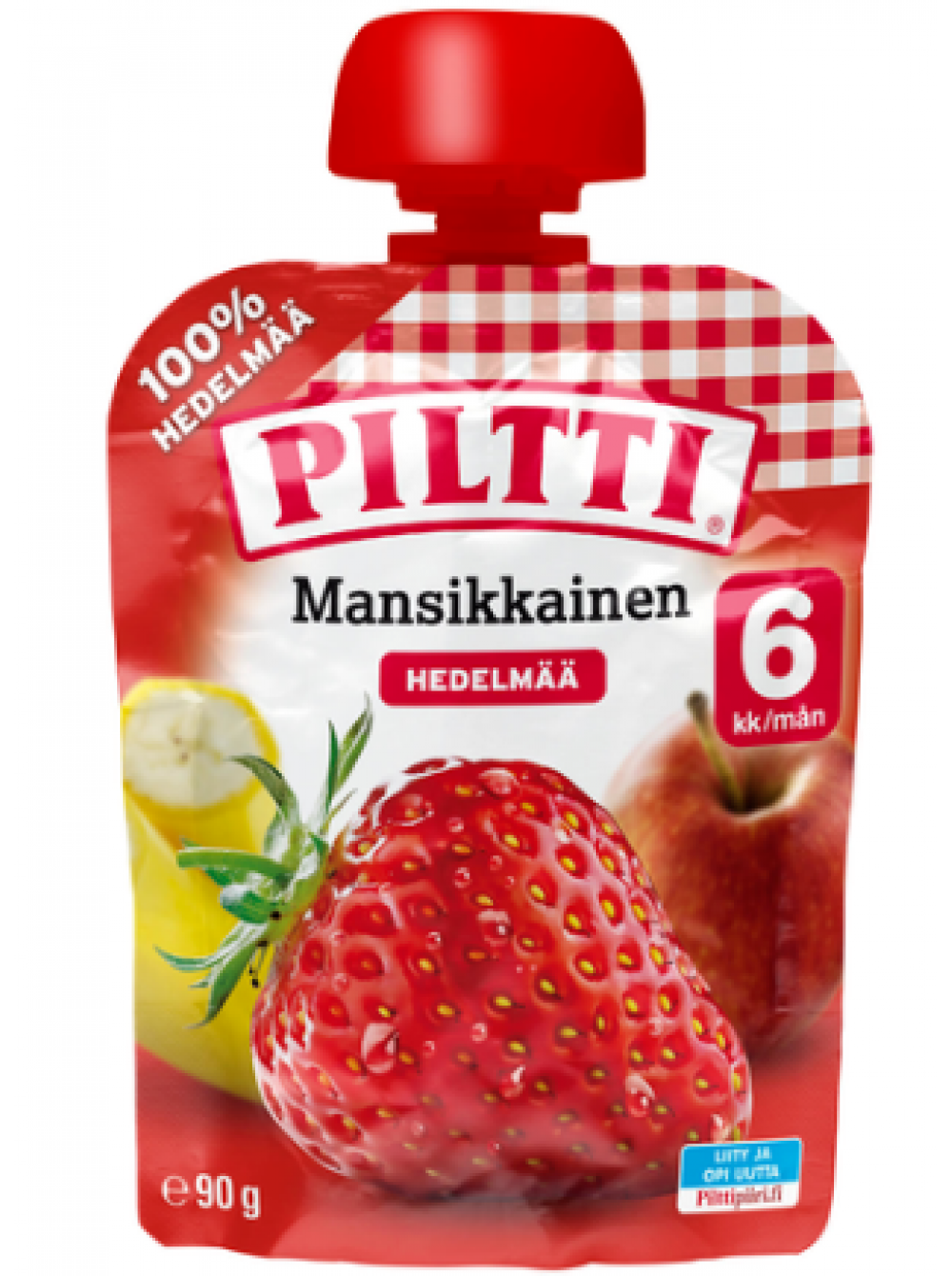 Продукт на 100% без сахара. Подходит в качестве закуски или десерта для детей от 6 месяцев. - Piltti Fruit Momentum Apple Banana Strawberry - это органическое фруктовое пюре с хорошим фруктово-ягодным вкусом. Продукт на 100% без сахара. Подходит в качестве закуски или десерта для детей от 6 месяцев.