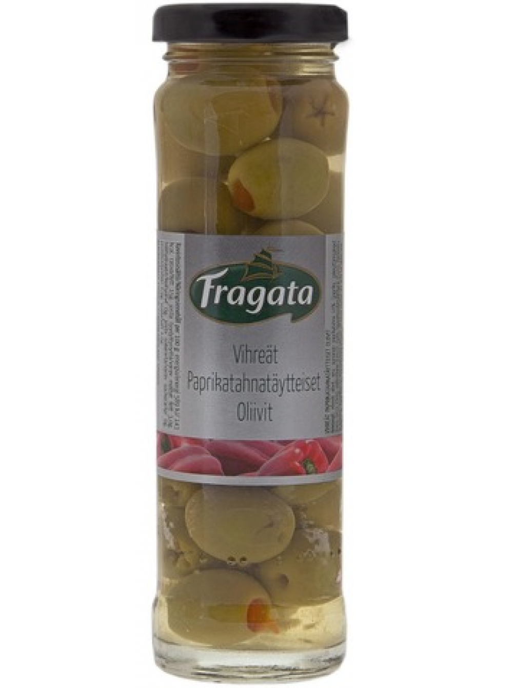 Малосоленая зеленая оливка с начинкой из паприки Fragata Vähäsuolainen Vihreä Oliivi Paprikatäytteellä 140г