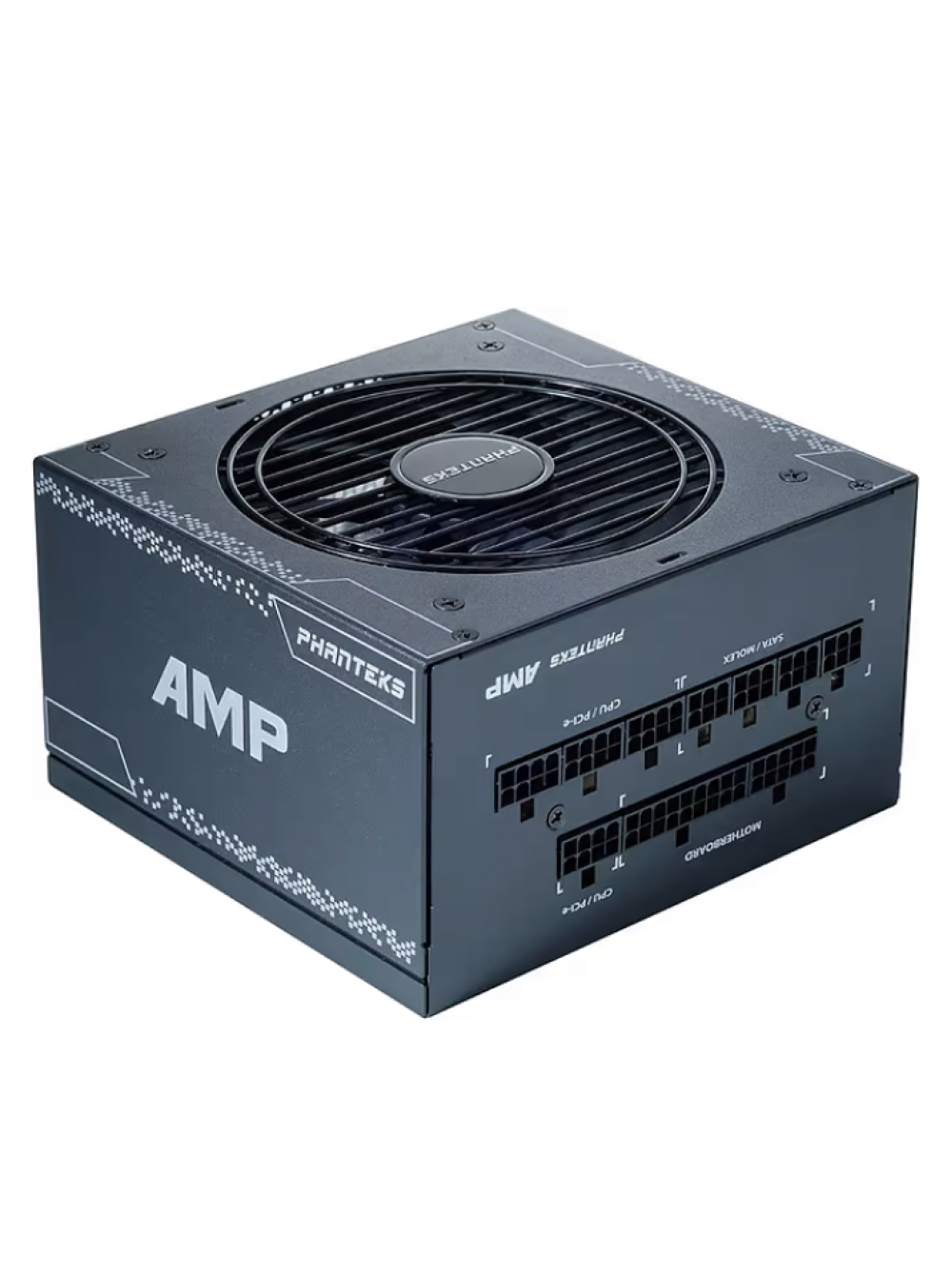 Phanteks AMP — это высококачественный блок питания ATX производства Seasonic, имеющий рейтинг эффективности 80 Plus Gold, полностью модульную кабельную систему, 120-мм вентилятор FDB и гибридный режим, отключающий вентилятор при нагрузке менее 40 %.
