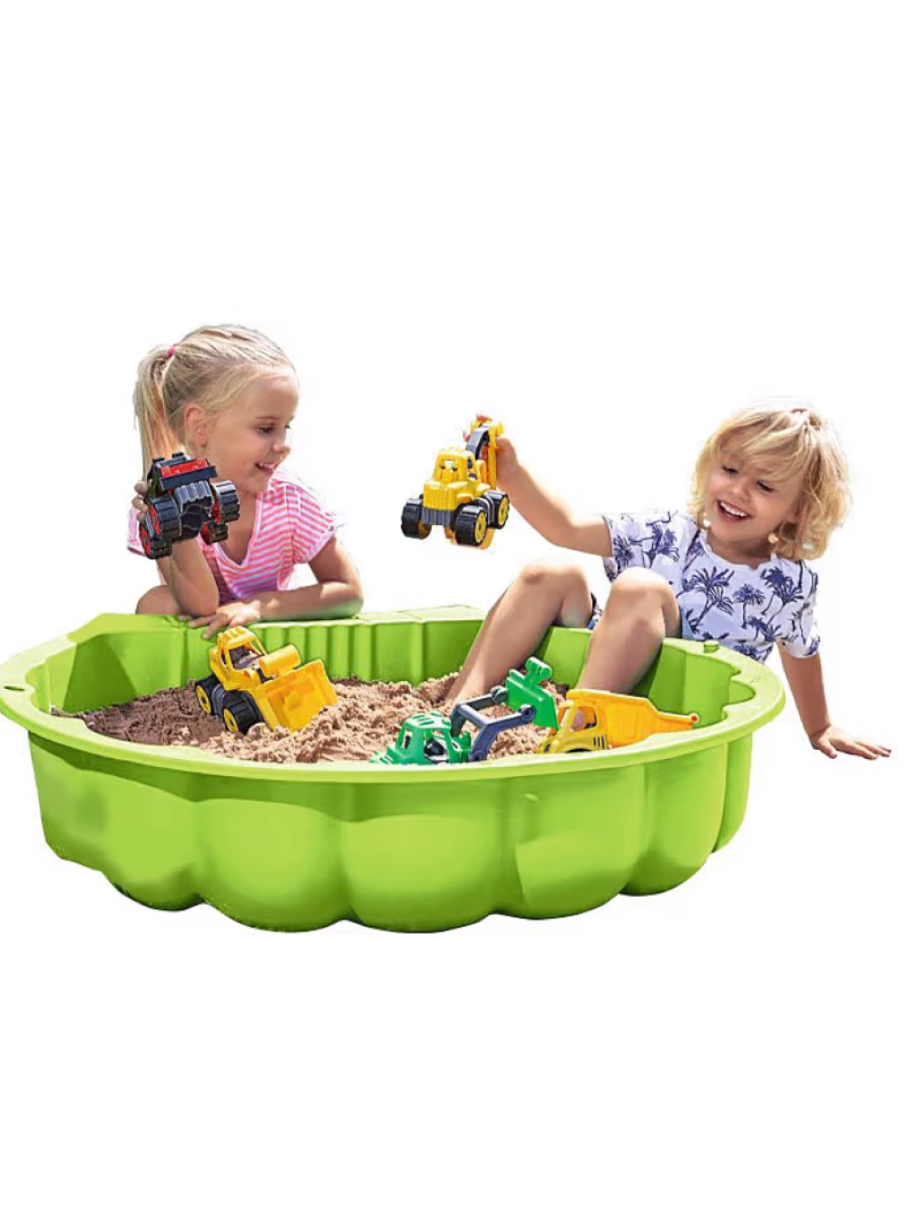 В этой песочнице в форме ракушки летние дни текут гладко. Внутрь двух половинок можно насыпать песок или воду, а другую оболочку при необходимости можно использовать как крышку.