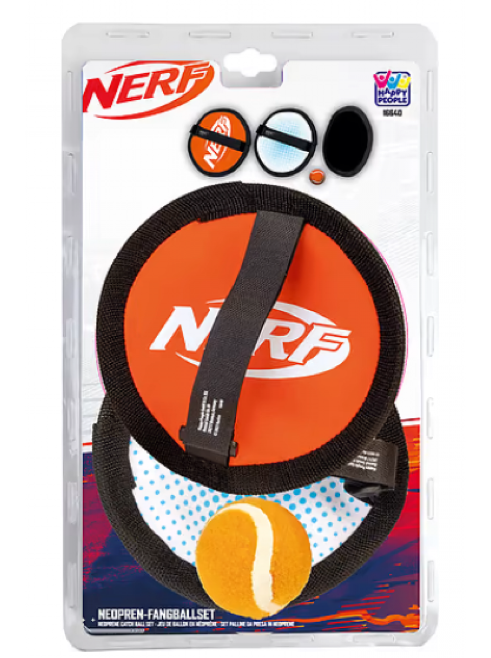 Игра в мяч NERF Neoprene из неопрена подходит для веселых игр на свежем воздухе и ее легко брать с собой на пляж и в поездки. В комплект входят аксессуары для двух игроков. Липкие ловушки для мяча!