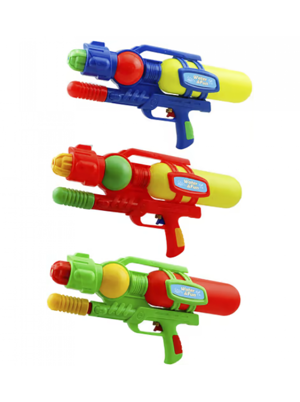 Классическая летняя игра: водяной пистолет! Водяной пистолет Toyrock оснащен вместительным резервуаром для воды, что дает вам большое преимущество в бою на воде! Бросьте вызов своим друзьям на битву и удивите их бесконечной струей воды. Ружье длиной 46 см оснащено красочной рамкой - доступно в трех разных цветах, выберите тот, который вам нравится!