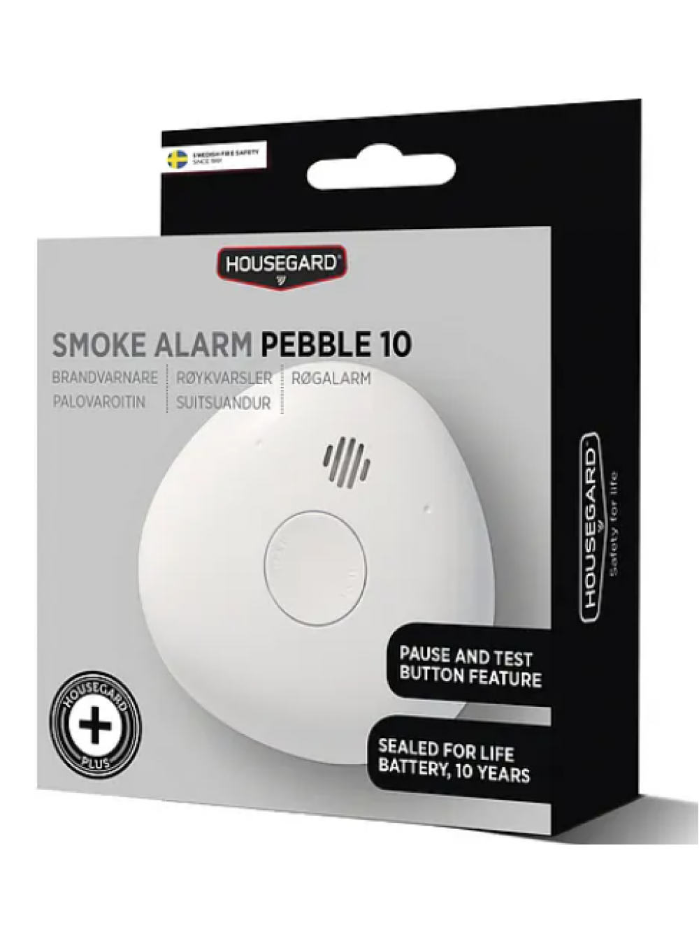 Оптическая пожарная сигнализация Housegard Pebble 10 SA701 разработана Ларсом Веттре. Внешний вид Pebble мягкий и эстетичный, поэтому он вписывается в каждый дом. Pebble 10 разработан, чтобы быть удобным для пользователя. Он имеет простые функции паузы и тестирования, и его легко чистить. Срок службы встроенной литиевой батареи пожарной сигнализации составляет 10 лет — дополнительная функция безопасности, которая гарантирует, что батарею не нужно заменять.