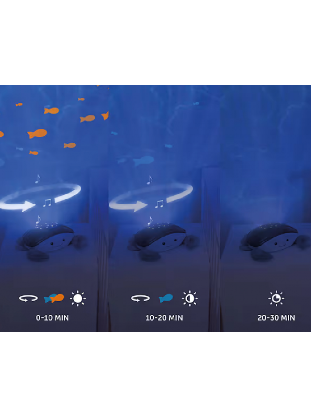 Зазу Коди превращает детскую комнату в волшебный подводный мир, где движутся волны, а под потолком плавают рыбки. Краб также сочетает в себе успокаивающий шум моря с отражением, которое самое позднее усыпляет. Трехступенчатая программа постепенно снижает эффект и автоматически отключается через 30 минут. Зазу Коди, который реагирует на ночной плач, успокаивает малыша звуками моря, сердцебиением или шепотом.
