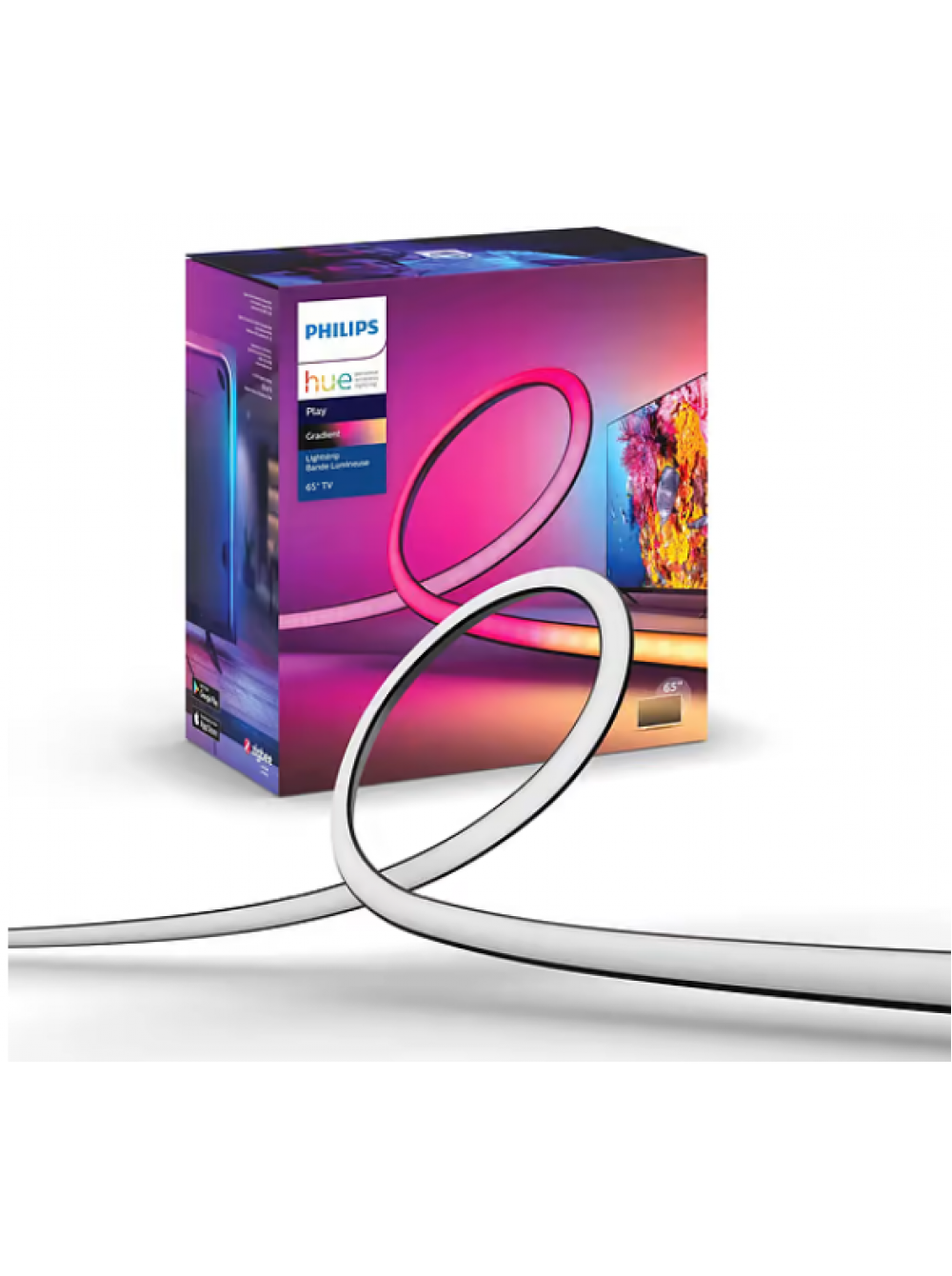 Градиент Hue Lightstrip Gradient плавно воспроизводит несколько цветов света в одной световой полосе, при этом огни естественным образом перетекают друг в друга, отражая уникальный эффект задней подсветки на стене на заднем плане.