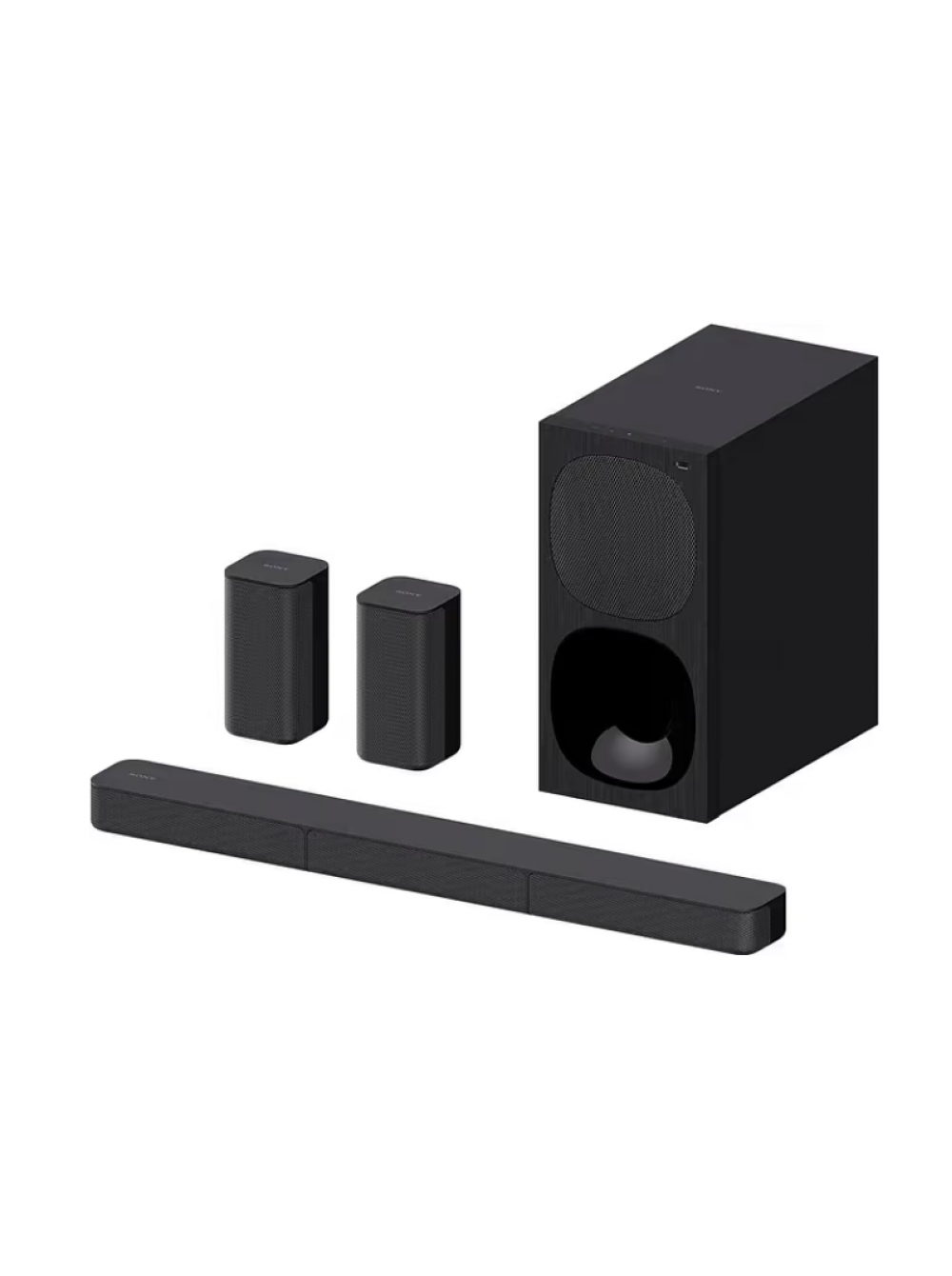 HT-S20R быстро настраивается. Подключите его, подключите основной динамик и задние динамики к разъемам с цветовой маркировкой, вставьте проводной сабвуфер и задние динамики и наслаждайтесь настоящим 5.1-канальным объемным звуком.