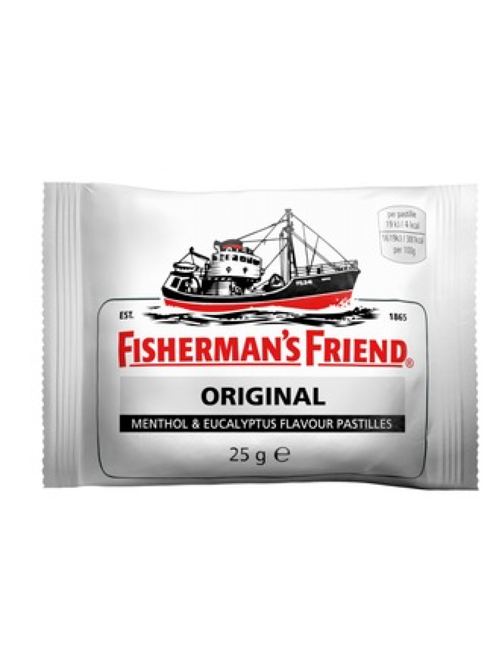 Пастилки, разработанные в 19 веке фармацевтом Джеймсом Лофтхаусом в Англии. Оригинальная крепкая таблетка Fisherman's Friend! Знаете ли вы, что продукт был сначала в жидкой форме, но стеклянные бутылки не выдержали рыбаков во время сильного шторма на море, поэтому продукт был разработан в виде пастилки.