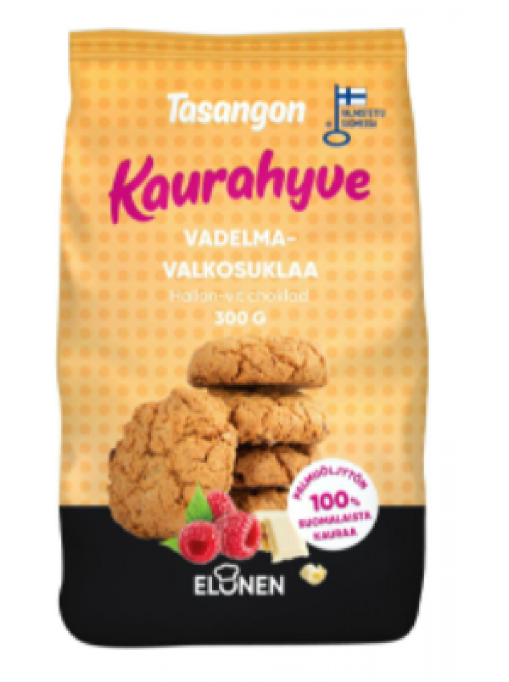 Печенье Tasangon kaurahyve vadelma-valkosuklaapikkuleipä 100% kaura 300г