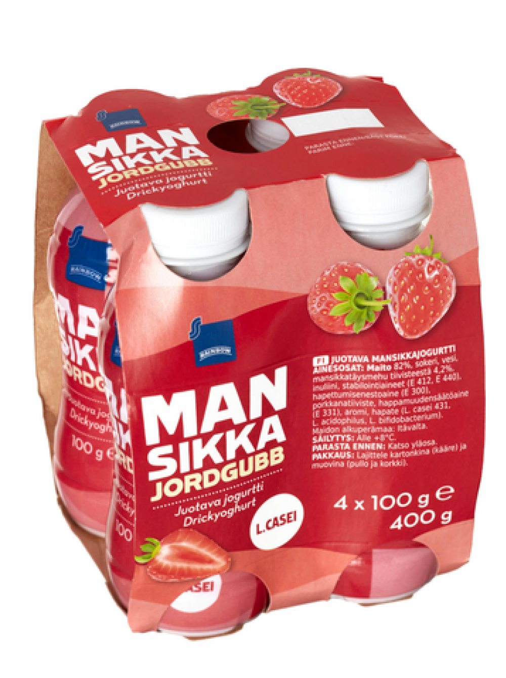 Йогурт питьевой Rainbow mansikka 4 х 100г клубника