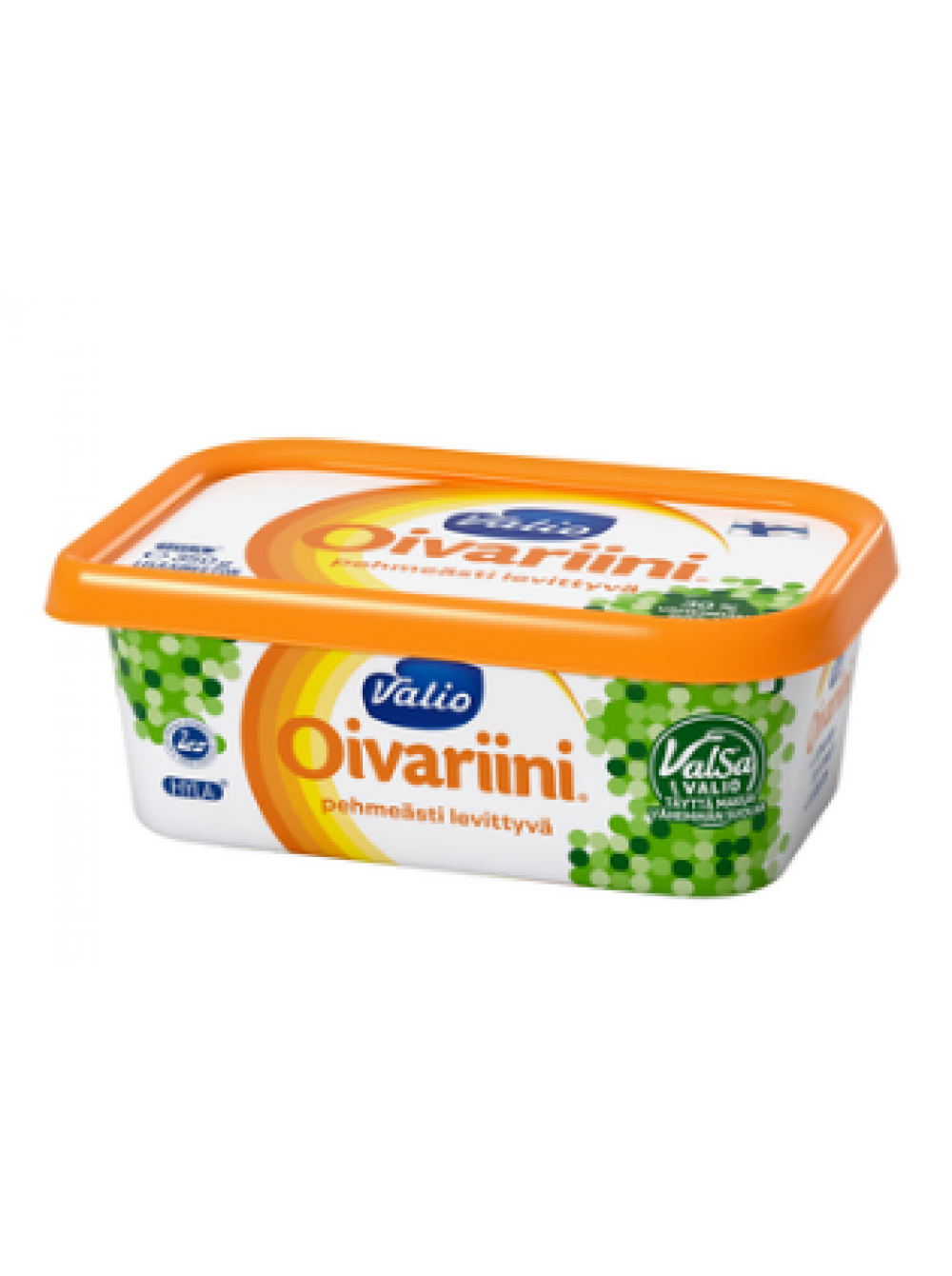 Мягкий спред Valio Oivariini® - хороший выбор, когда в жизни достаточно быстрых ситуаций и нужны быстрые ласты. Oivariini®, который мягко намазывается на хлеб, также содержит меньше соли, поскольку мы заменили часть обычной соли на молочную соль Valio ValSa®, то есть натуральные минералы, содержащиеся в молоке. Проведите пальцем по хлебу, используйте в кулинарии или выпечке - и наслаждайтесь. Вся продукция Valio Oivariini® всегда производится из свежего финского масла и мягкого рапсового масла без добавок и консервантов. Это естественный выбор для всей семьи.