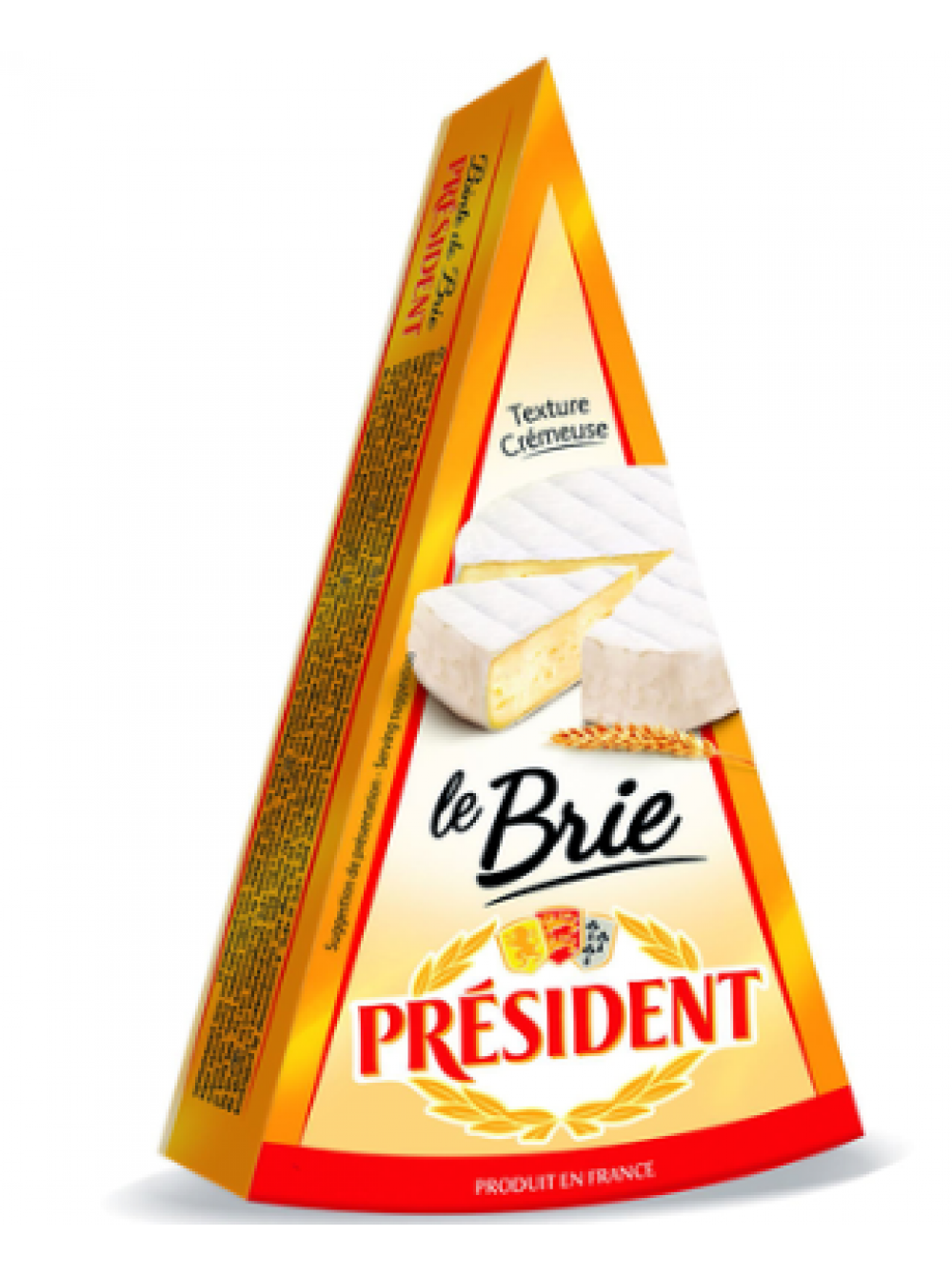 Président Brie - самый популярный сыр Франции. Вкус Président Brie мягкий и слегка кислый, но становится более насыщенным, когда сыр созревает. Композиция со временем становится бархатно-мягким.