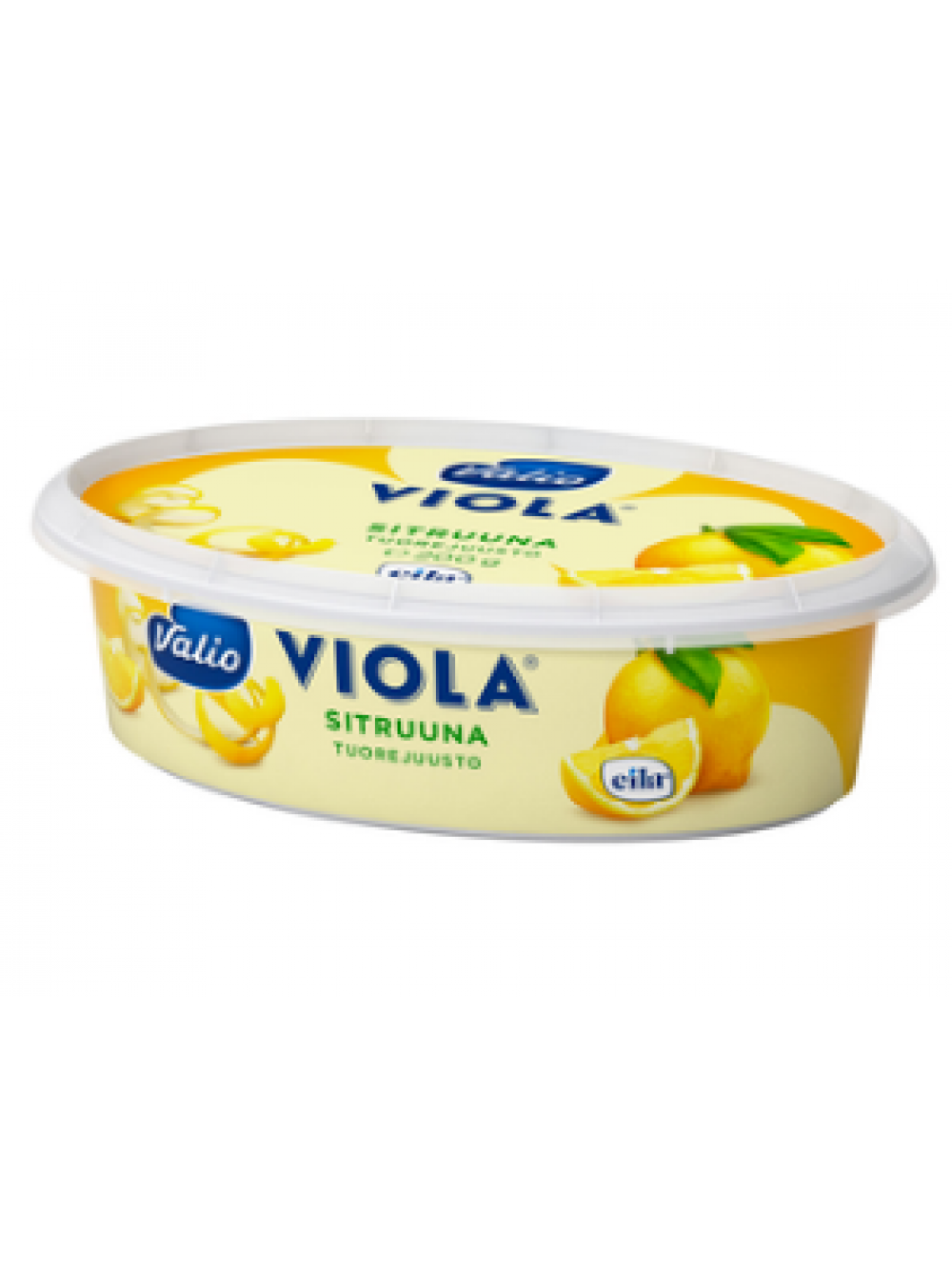 Valio Viola Lemon — это свежий цитрусовый сливочный сыр, вкус которого достигается за счет натуральных лимонов и лимонной цедры