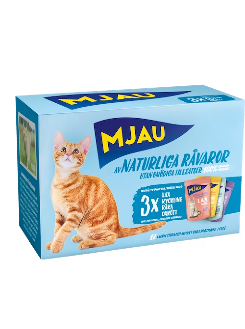 со вкусом рыбы и мяса в желейном ассортименте содержит 12 порционных пакетиков (85 грамм), со вкусом лосося (3 шт), курицы (3 шт), креветок (3 шт) и говядины (3 шт). Этот продукт производится в Варгорде, Швеция, из чистых и натуральных ингредиентов. Продукт содержит 100-процентные белки животного происхождения, без добавления сахара и зерна. Одного пакета достаточно для еды вашей кошки. Этот продукт тщательно изготавливается в Воргорде, посреди сельскохозяйственных угодий Вестгётланда.