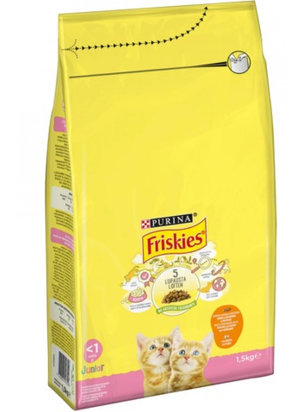 Сбалансированный корм для котят Friskies Junior Kanaa, Maitoa Ja Kasviksia 1,5кг курица, молоко и овощи