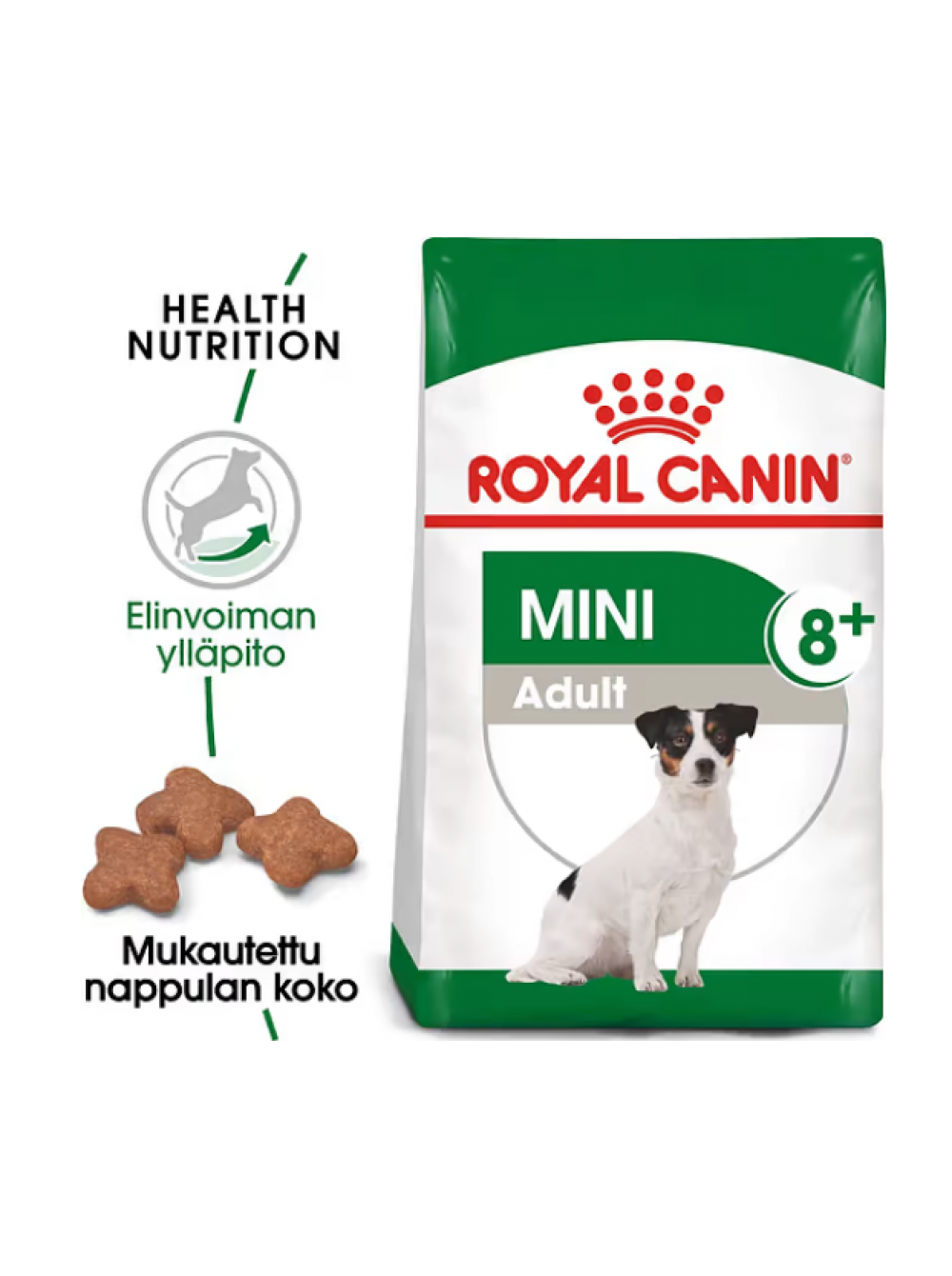 Royal Canin Mini Adult 8+ — это вкусный полноценный корм, разработанный специально для пожилых собак старше 8 лет. Благодаря размеру куска лучше всего подходит для маленьких собак весом взрослой особи 1-10 кг.