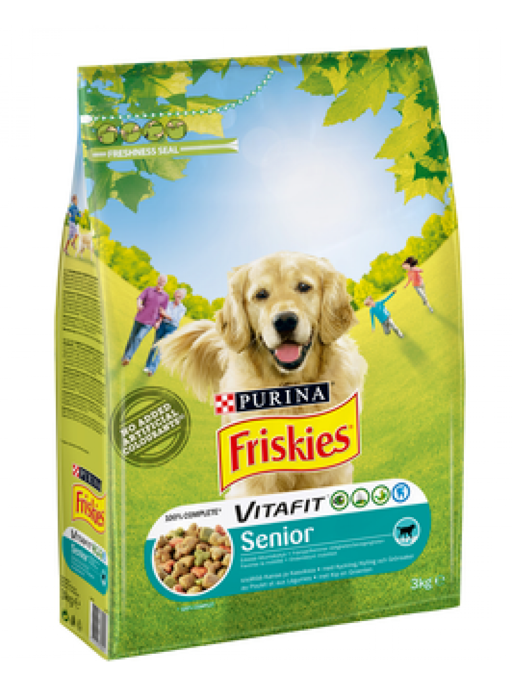 Сбалансированная полноценная диета, содержащая курицу и овощи для собак старше 7 лет. - Friskies Senior предназначен для собак старше 7 лет и предлагает сбалансированную, полноценную диету, специально разработанную для поддержания здоровья суставов вашей собаки и поддержания физической активности.