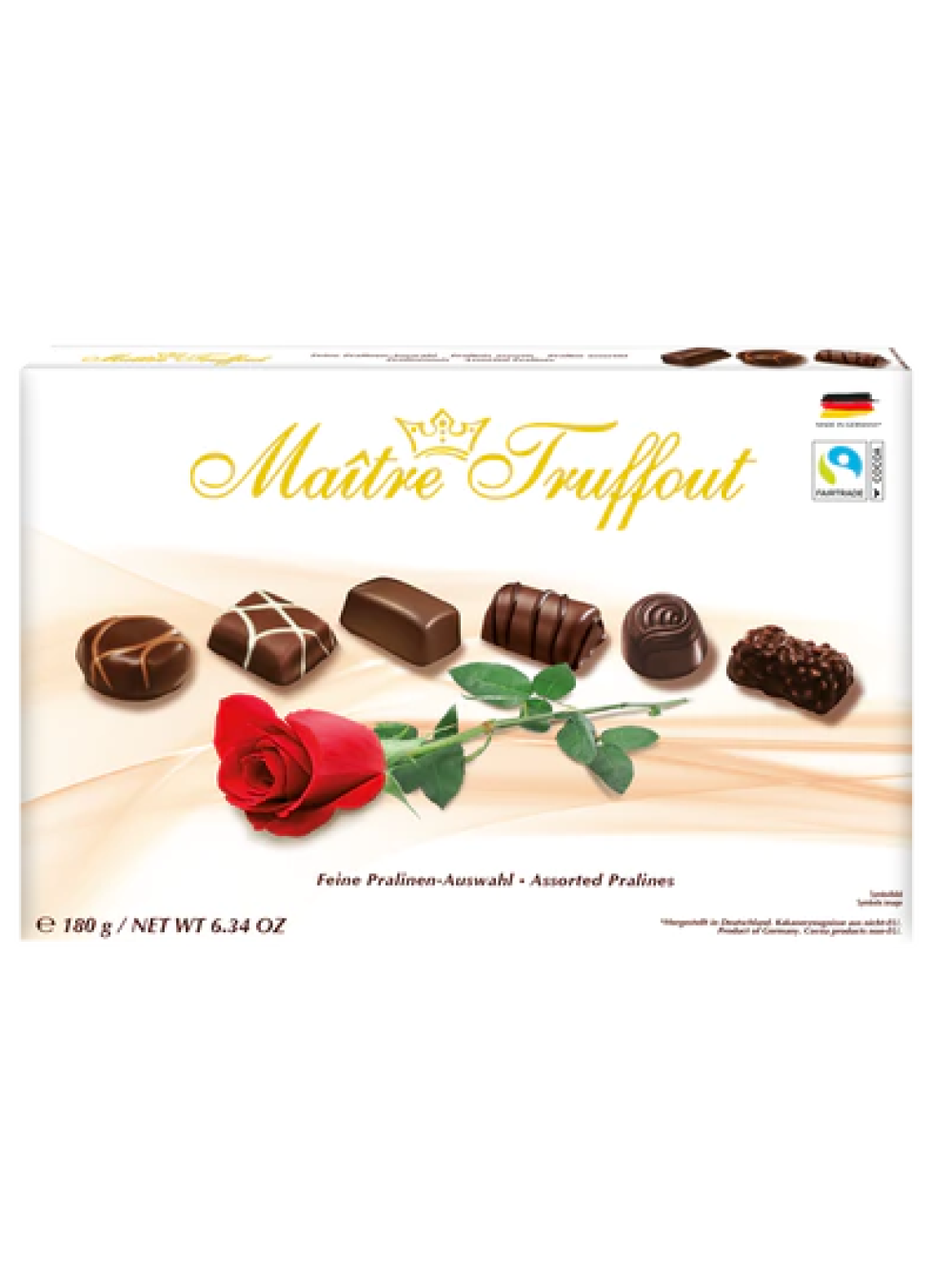 | Вид | Подарочное ассорти шоколадных конфет пралине Maître Truffout Rose 180г |