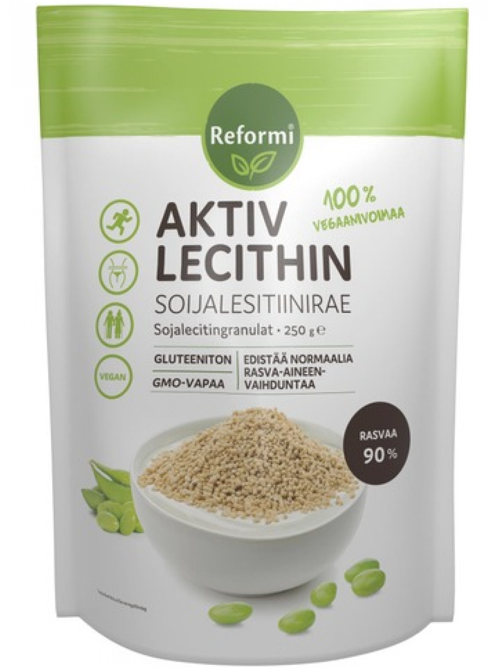 Холин способствует поддержанию нормальной функции печени, а также нормальному метаболизму жиров. Холин способствует нормальному метаболизму гомоцистеина. Генетически модифицированная соя не используется в производстве гранул соевого лецитина Reformi Aktiv Lecith.