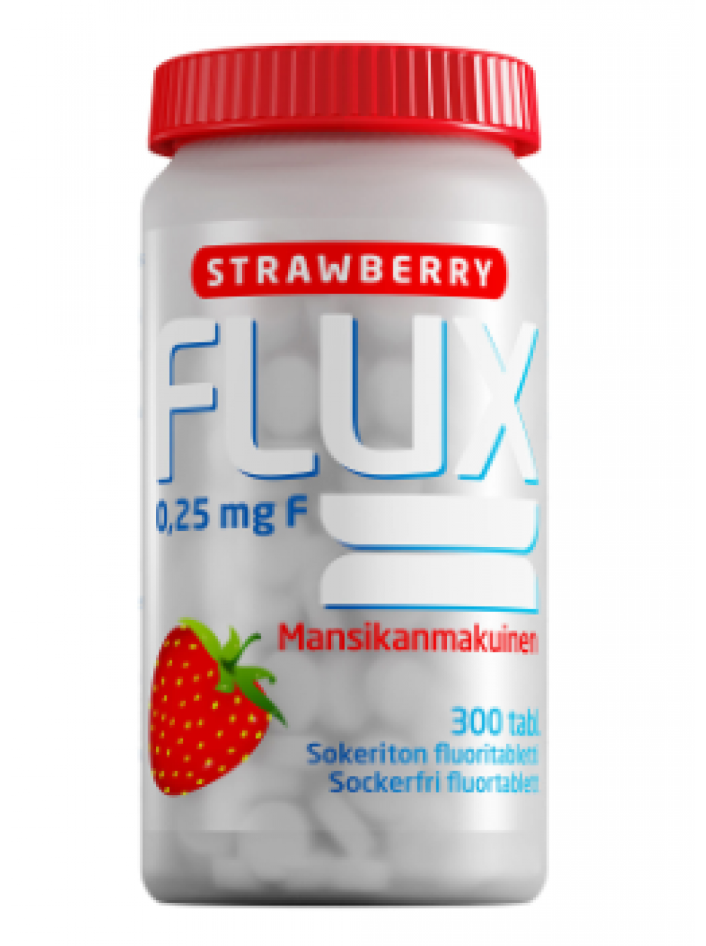 Не содержащие сахара сочные леденцы со вкусом клубники. Flux Strawberry Fluoride Tablets содержит фторид (0,25 мг F), который помогает поддерживать минерализацию зубов, то есть уменьшает кариес, предотвращая минерализацию зубной эмали. Фторидная добавка подходит, например, для пользователей-ортодонтов, частичных зубных протезов, сухих струпьев или лиц с повышенным риском развития кариеса.