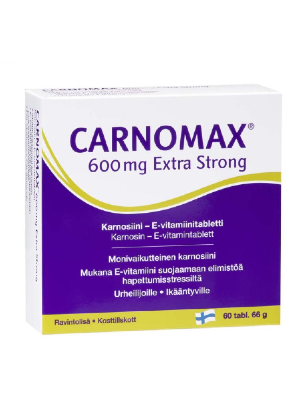 Сильный препарат карнозин-витамин Е. Карномакс 600 мг Extra Strong содержит многофункциональный карнозин и антиоксидант витамин Е. Витамин Е защищает клетки от окислительного стресса, придавая телу жизненную силу и молодость. Карнозин - это дипептид, состоящий из двух аминокислот, который содержится в тканях мышц, сердца и головного мозга. Карномакс подходит для пожилых людей, спортсменов, любителей фитнеса и активного образа жизни. Подходит для постоянного использования. Без лактозы, без глютена, без дрожжей и без сахара. Не содержит ингредиентов животного происхождения, веганский. Пищевая добавка.