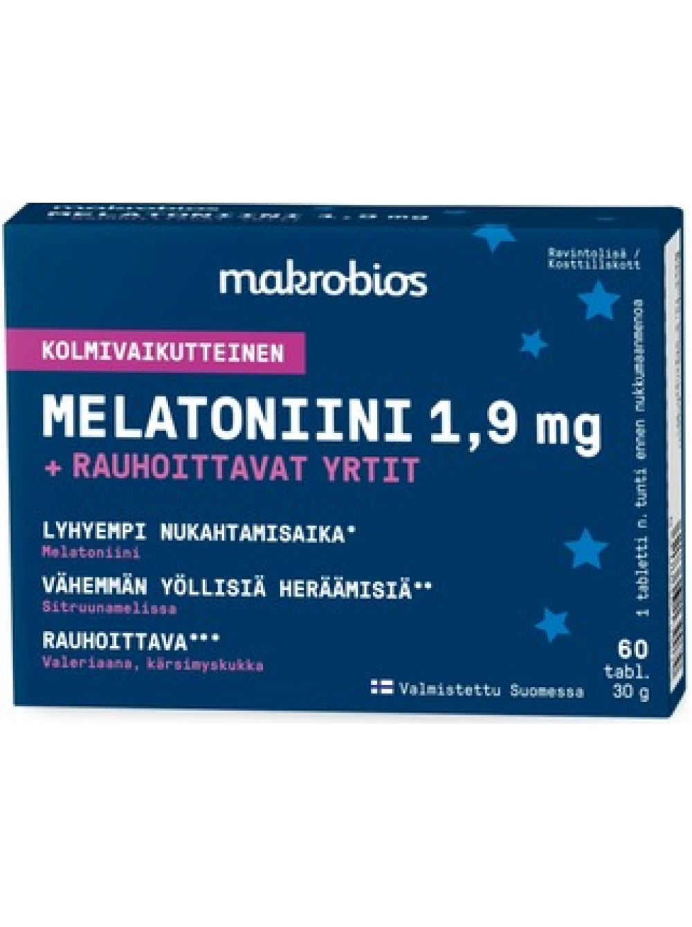 Таблетки тройного действия Macrobios мелатонин 1,9 мг + успокаивающие травы 60 таблеток 30 г